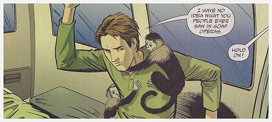Without going into spoileriffic detail, I'll just say I thought it was an obnoxious injection of magic into what had been a non-magical, realistic world. I have a biochemistry degree, and I had been impressed at how little head-slapping Bad Science this book contained (a frequent problem for science fiction of the "mysterious plague" subgenre) and at how well Brian K. Vaughn had succeeded at writing technical dialogue for Dr. Mann that wasn't gibberish to someone who actually knew what all the words meant. But all that goes right out the window in this volume ... in earlier volumes, the series had flirted with the idea that magic exists (prescient dreams, red herrings about enchanted rings or ancient amulets), and I had liked the tension between these elements and the dogged realism of Dr. Mann's search for the cause of Yorick's immunity to the plague. But in this installment, instead of stepping up the juggling act, Vaughn seems to have chosen to drop one of the balls.