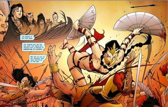 Man, there must be a doctorate thesis-level of material in here about the Asia is portrayed in American comics. Honestly, I don't know what I feel about it. Like the last volume, the writing and art are terrific. Most of the stories are legitimately great, though the sections that are about previous Iron Fists or the other Immortal Weapons and NOT Danny Rand are much, much better than the stuff about him. Taken on its own, this is high-quality comic book writing, but it's also amazing that you can write an entire series mostly set in China and starring mostly Asian characters and have almost no references to actual Asian mythology or culture. Like they spend several issues in a Chinese Hell dimension, but it's kind of a cultural ... blank slate? And Kun'lun itself is as generically Asian as possible. This was written recently (the run began in 2006), so it's not as if the internet didn't exist and it was hard to find visual reference material. You get that excuse for comics written before the 90's, maybe the 80's, where you could just draw a forest and call it Tibet, but not now. So either they didn't do any research beyond a specific brand of kung fu movies or they actively decided to make it as generic as possible so as to not offend anybody. Different ages, cultures, and languages are conflated and the story doesn't end up being about anybody with a specific origin, with the exception of some stuff about previous Iron Fists from different generations (though the one about the Opium Wars is just straight-up wrong). The most-researched storyline is obviously the one about the previous Iron Fist, who is Western, and who lived in Hollywood in the 1920's, so that's when the story takes place. On the other hand, I really enjoyed reading all of this. I just don't know what to make of it.