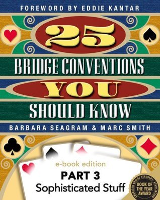 Based on the best-selling book 25 Bridge Conventions You Should Know, "part 3: Sophisticated Stuff" includes the following 18: Lebensohl Chapter 19: Reverse Drury Chapter 20: Roman Key Card Blackwood Chapter 21: Fourth-suit forcing Chapter 22: New minor forcing Chapter 23: Ogust responses to weak two-bids Chapter 24: Responsive doubles Chapter 25: Lead-directing doubles For the remaining conventions, look for these Bridge Conventions You Should Know - Part 1: Learn These First25 Bridge Conventions You Should Know - Part 2: More Complicated