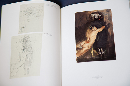 This book Kent Williams: Drawings & Monotypes was published in 1991 and contains some of his paintings and sketches. Compared to his current work, those in the book are really raw and look unfinished. There are a few sketches but nothing really special.