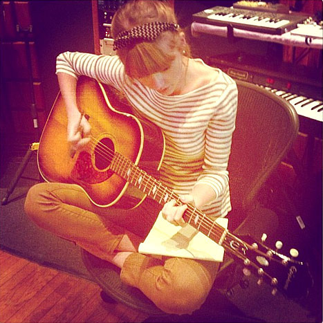 Now I'm the one staring. Fortunately, she's is completely oblivious, her eyes closed while she strums her guitar."