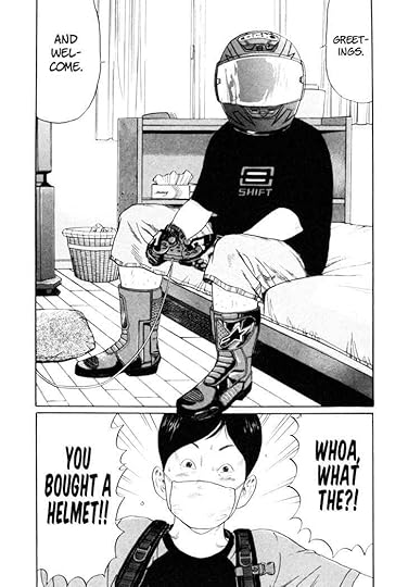 I first came across this author when I read his 'Saltiness', that became my surprise hit of the season. Then I realized that one of the series I had passed up on often was also his; many had mentioned his 'Ciguatera' on those long lists of "best manga ever". However, I had ignored it because all the mentions emphasized how much the protagonist cared about motorcycles, and I don't give a shit about motorcycles. However, the subject of motorcycles could have been substituted here for any other passion that would align with someone's instincts to the extent that indulging in it would help the person escape from the nonsense that life hurls around.