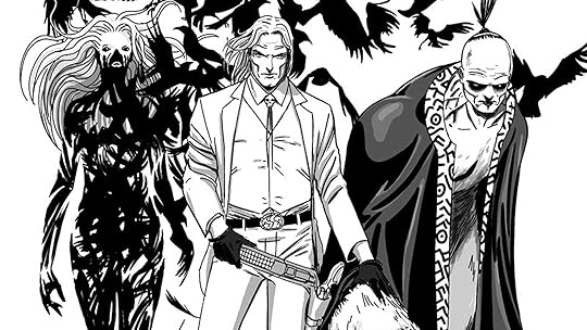 In East of West, an alternate world where an extra long American Civil War led to the creation of seven separate states that make up America. For some reason the four horsemen of the Apocalypse, in kid form, have shown up minus Death who is for some reason a pure white adult gunslinger looking for his wife(!). The three horsemen set out to find Death to complete their group and bring about Armageddon. Or something like that. It’s Old West meets Star Wars meets Far East meets boring.