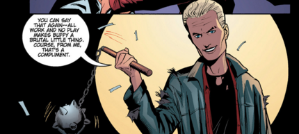 El dibujo de este tomo ha sido de mis preferidos. Al estar ambientado en la cuarta temporada en su mayoría, tenemos a un Spike cojonero que no tiene precio y, por suerte, Riley sale muy poco.