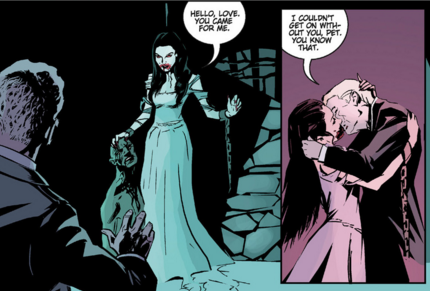 Cemetery of Lost Love by Fassbender and Pascoe: Typical Twilight bullshit: Girl wants to live forever, and her vamp boyfriend says "Baby, whatever you want so long as you keep taking my gross vampire man bits" and she's allllll for it. Until Buffy intervenes. And thus, the rest of the story: Pissed off girlfriend who now has dust for a boyfriend, calls up a pal to help with some voodoo so that she can live eternally, shit goes down, blah blah blah, it backfires, she dies. Thank god there's only one Bella in the world of fiction because that's five too many.