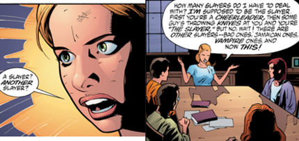 The Heart of a Slayer: We meet another Slayer (11th century) chasing a pesky demon through time and Buffy is none too plussed to meet her.