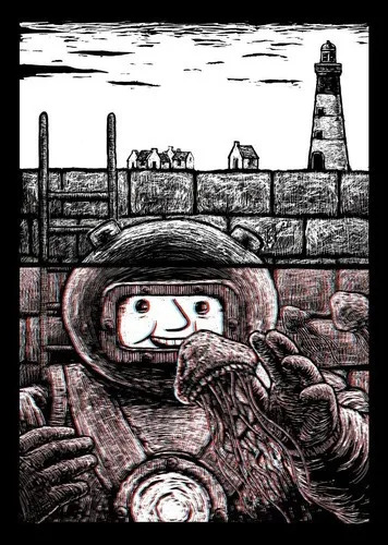 A visual adventure in the depths, the 3D glasses (while a bit headache inducing) give the already stunning illustrations life. A truly exciting wordless picturebook.