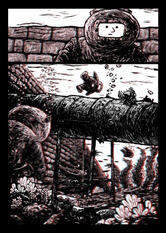 This book is amazing. Sometimes, things in 3D are kinda gimmicky. I'm not really a fan of 3D movies, and I don't tend to get super excited about anything just because it is jumping out at my face. But this book is GORGEOUS. It's rare that art in 3D looks BETTER than it does in 2D, but since this book is about being underwater, there's something about the 3D rendering that makes you just feel like you're floating underwater with the main character.