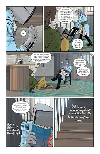 Prince Robot IV entered Quietus to visit an author who made Alana motivated to be radical of some sort. Of course, Prince Robot IV is quite right that the rogues are here in this planet but they arrived earlier than him. Oh, I didn't know that the lying cat is a she hehe.