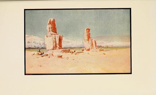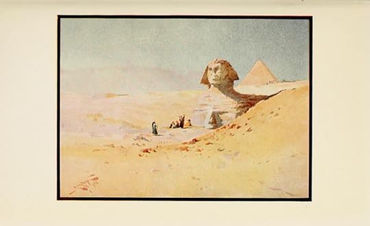 Remarkable to his eye sense was the color of the night (“a color unknown”—to westerners, it’s implied); and, subsequently, the pervasive “rosy...tint”. Several lines are dedicated to the Sphinx, deteriorating. And, of course, throughout the entire trip: to the pyramids.
