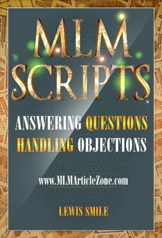 "In a style that's as captivating (and humorous) as it is informativeand direct, author Lewis Smile uses the compass of the human experience tonavigate readers through the real obstacles that cause stagnancy in recruitment and growth."- R. H. EllisonIn MLM Scripts, Lewis Smile takes the most common Network Marketing objections and dismantles them, revealing the thought process behind each, giving you the answers that satisfy what your prospect is really asking.In each section you will discover not only the answer to each objection, but the reasoning behind each answer. MLM Scripts gets to the heart of what each objection is really asking, and how to answer it in the most effective way.At the heart of every objection is the overriding fear of making the wrong decision. With proper study and planning, you can be deftly dance around each objection, putting your prospect at ease by answering their specific concerns, and speaking directly to the thought process at the heart of each of their questions."When signing someone up to this business it is certain youwill hear at least one of the objections in this book and with the answersand logic in this book you'll be able to put anyone's mind at ease."- Jeffrey HArmed with this knowledge you will be able to neutralise objections before they even come up in conversation, perhaps before your prospects even think of them. Improving your understanding of why people raise each objection gives you a clearer view than ever before of the process of recruiting.You can be recruiting like an old pro, with years of experience and thousands of signups under her belt.You can build a downline that never stops growing, and you can pass these skills on to your team members. Immediately download years of experience , in a matter of minutes.This book is for you " This book was exactly what I needed to guide me throughsome of the questions that have been coming up. Written clearly andsuccinctly, it not only told you what to say, but gave you the psychology behindthe sales so you understand WHY you would answer in this manner."- Kelly BAfter reading this book, you will easily be able to answer all of the following If you don't know how and why to answer each and every one of these most common objections, you are undoubtedly losing potential signups...