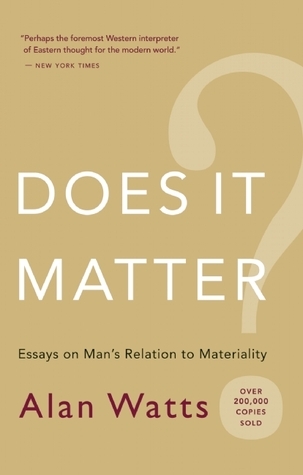 Does it matter? Alan Watts's "Essays on Man's Relation to Materiality". In this short collection of essays, Alan Watts explores modern day problems from the outlook of his own philosophy, inspired mainly by Mahayana Buddhism, Hinduism and Taoism. Tackling problems of economics, technology, cooking and clothing, Watts offers a fresh perspective which is all too foreign to western society. Published in 1970 just shortly before his death, this book is as relevant now as it was when it was written. An interesting Eastern-esque take on phenomenology, Watts guides you through his thought process's as he explains the problem of confusing symbol with reality, and helps rekindle the consciousness of our connection to nature and our surroundings. Perhaps the most eye-opening new idea in the book was the distinction that we aren't beings who "come into this world", but rather beings who come out of it. I will definitely be reading Watts again and hope all his books are as inspiring and interesting as this.