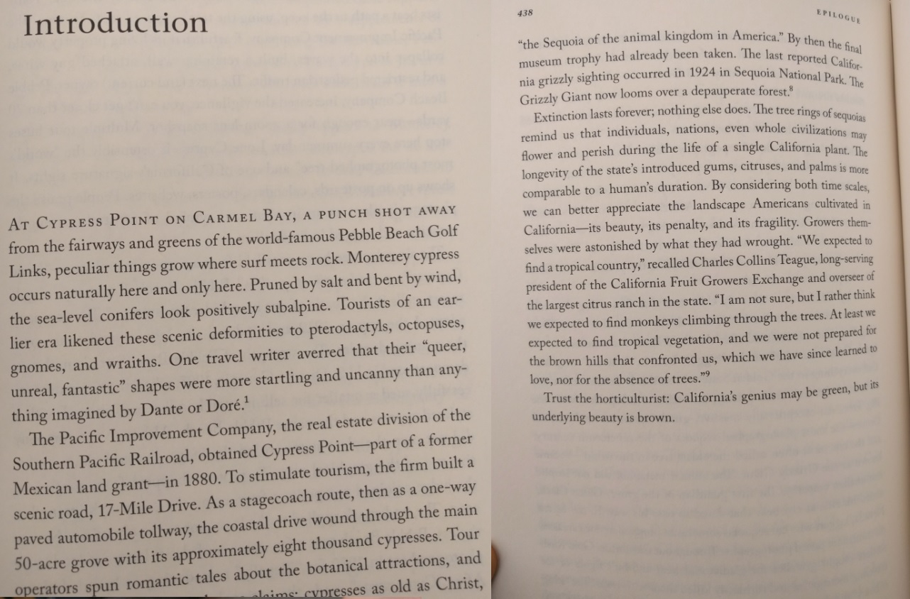 If like me you have just spent a few decades preoccupied with California botany, geography and agriculture, you will find this book meaningful. The four-part structure of the book is an interesting way to present the state’s vast floral diversity: redwoods, eucalyptus, citrus and palms. I like that he also gives a nod to other important species such as peppers, oaks and Monterey cypresses. But beyond that, this book is really a history of California - a massive undertaking told from the perspective of trees and horticulture. It’s also a mountain of fascinating, well-researched material, covering such areas as California’s role in the genesis of modern land management, forest management, agribusiness and urban landscaping. The author provides a refreshingly original examination of native vs. non-native plants. At times it seems bizarre the way he continually connects his discussion of trees to racism, but that’s also very informative. The last section is a bit of a downer, as he explains, in great detail, everything wrong with Southern California - environmentally and otherwise. But it’s not the author’s fault that Los Angeles is an urban monstrosity, he’s just the messenger. And all in all he pulls off what he sets out to do - a history of California from the viewpoint of trees and horticulture. This is a big, heartfelt work - a labor of love by a committed scholar. As an east coaster who moved west, I appreciate his transnational perspective.