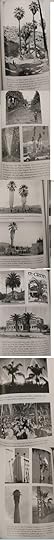 PALM TREES OR SHALL WE SAY "TREES": Did you know palms are more closely related to grasses (e.g. bamboo) than trees?!? I didn't. Another amazing thing I learned was that, unlike most (true) trees, palms pretty easily survive transplanting and thus can be sold at mature or near-mature height from property to property like a carved mantlepiece, stained-glass window, etc. How perfectly adapted to the California sport of buying and selling real estate. Across the decades, palms have visually signaled a sort of "paradise" image of California and have thereby served as a sort of vegetable sales force for the real estate business.