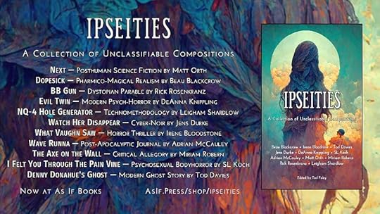 Liminal and experimental stories by Beau Blackcrow, Irene Bloodrose, Tod Davies, Jens Durke, DeAnna Knippling, Shawn Koch, Matt Orth, Miriam Robern, Rick Rosenkranz, Adrian McCauley, and Leigham Shardlow.