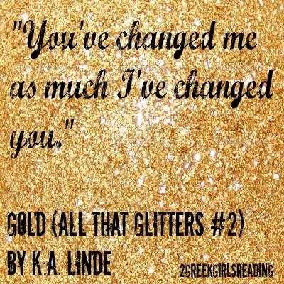 K.A. nailed the conclusion to Bryna's story in Gold. Now, technically, you could read this one as a standalone; however, I do think you'll understand Bryna's motivations better if you read Diamonds first. You'll also be able to appreciate the TREMENDOUS growth in her character throughout this book if you start with Diamonds. I finished this about a week ago in one sitting, wishing I was able to speed read. I loved watching Bryna learn, the hard way, that maybe gold digging wasn't all fun and games. There were a few contenders for B's affections and I was anxious to see who, if any, would be able to find the key to unlock her heart. Like white knuckled my Kindle anxious. Getting to know her men was exciting; I was completely wrong about one, didn't care for another, and was head-over-heels in love with another (I swear whenever I think about him and the things he said I smile, fondly. I love him on a Jack Howard level). Gold made me deliriously happy. It was a fabulous story reminding us that people CAN change and, sometimes, you just need the right person to make you see the you you're meant to be, not the you you're expected to be.