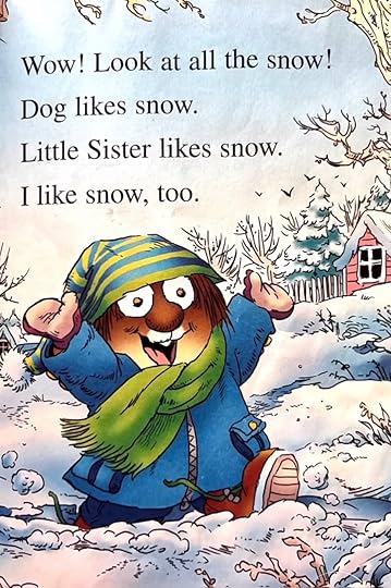 So I suck up my disdain. I become Little Critter and spew his drivel about snow and snowballs and dogs and snowmen and sisters and soup, and I make my girl smile.