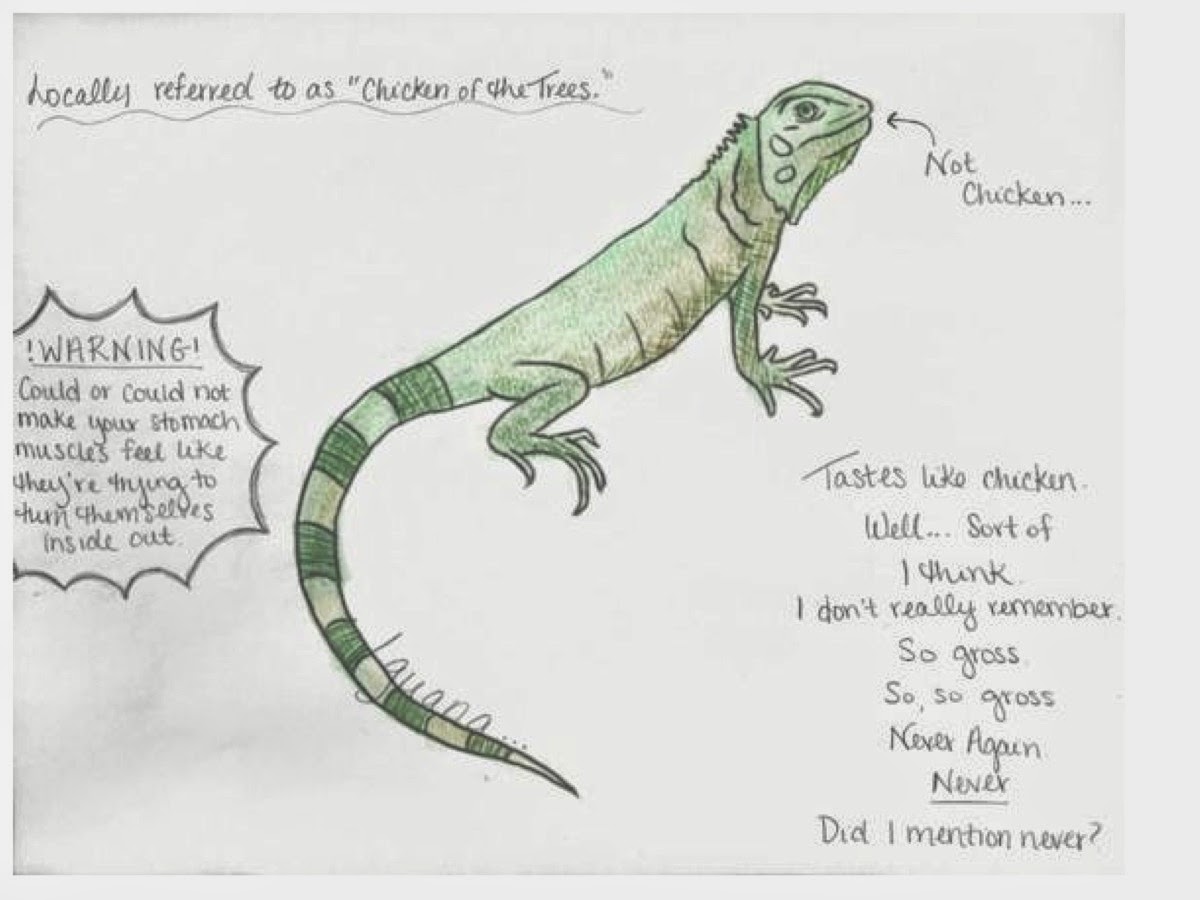 Those of us who read Solving For Ex will remember Sofia and know that working is the last thing in the world she would ever want to do. When I began reading First World Problems I found it hard to actually like Sofia, I even tweeted to Leigh Ann about it, Sofia really comes across as an extremely spoilt person, and her attitude towards others matched her lifestyle perfectly. However, having such awful feelings for her in the beginning, made it easier to really see her throughout the book, and see the changes she makes as a person. One of the first instances where I did actually feel sorry for her was her first real meal there. She eats with abandon, never really feeling so hungry before, and really enjoys what she is eating until she is told what it is.......iguana, this little dude below. I would have had the exact same reaction as she did if I was told I had just eaten iguana.