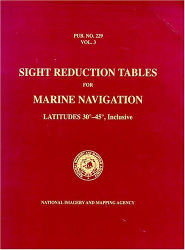 PUB 229 - Volume 3: Sight Reduction Tables for Marine Navigation The Sight Reduction Tables for Marine Navigation (Pub 229) is published in six volumes, each of which contains two-eight degree zones of latitude with a one-degree overlap between volumes. They are designed to facilitate the practice of celestial navigation at sea. The tables are primarily used with the intercept method of sight reduction by entering arguments of latitude, declination, and local hour angle and obtaining tabulated altitudes and azimuth angles. The tables are prepared and published by NIMA on an as-needed basis.
