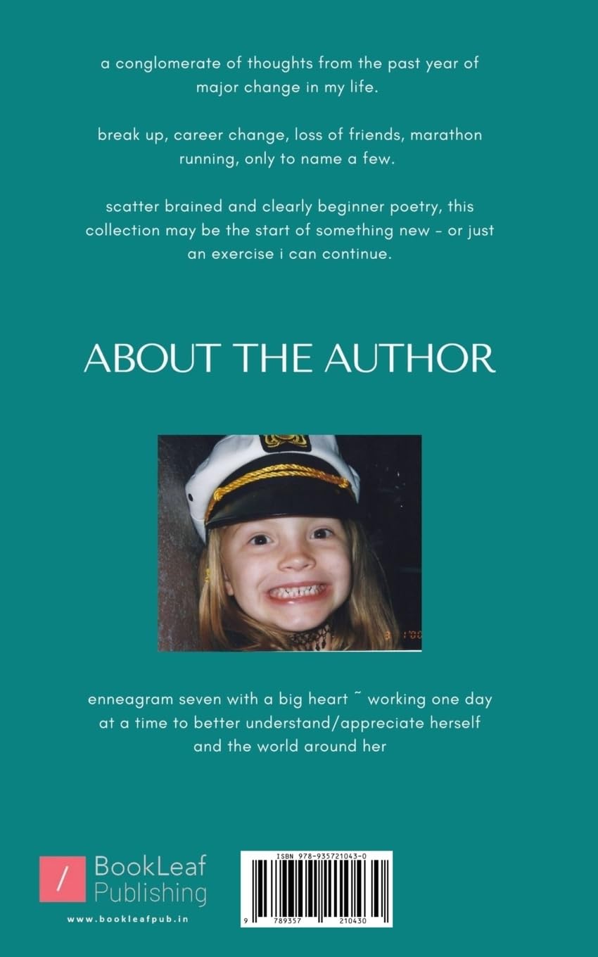 ""a conglomerate of thoughts from the past year of major change in my life. break up, career change, loss of friends, marathon running, only to name a few. scatter brained and clearly beginner poetry, this collection may be the start of something new - or just an exercise i can continue.""