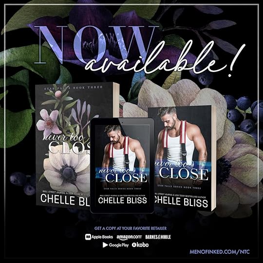 Never Too Close is the third book in the Star Falls series but can be read as a stand alone. This was my first Chelle Bliss novel and I absolutely adore her writing style.