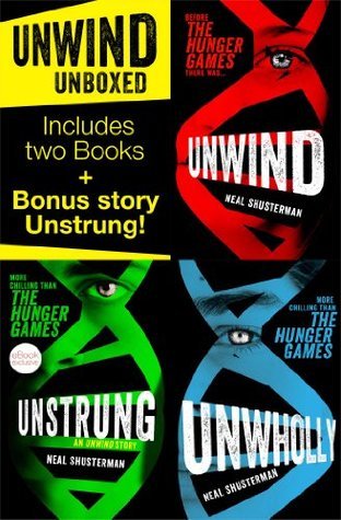 Unwinding - the process by which a child is both terminated yet kept alive. With breath-taking suspense Unwind is a chilling futuristic tale of ethics and morality combined with fast-paced non-stop action. This ebook boxed set includes Unwind, and Unwholly, plus a bonus companion story, Unstrung. In a society where unwanted teens are salvaged for their body parts, three runaways fight the system that would 'unwind' them. Connor's parents want to be rid of him because he's a troublemaker. Risa has no parents and is being unwound to cut orphanage costs and Lev's unwinding has been planned since his birth as part of his family's strict religion. Brought together by chance, and kept together through desperation, these unlikely companions make a harrowing cross-country journey, knowing all the while that their lives are hanging in the balance…