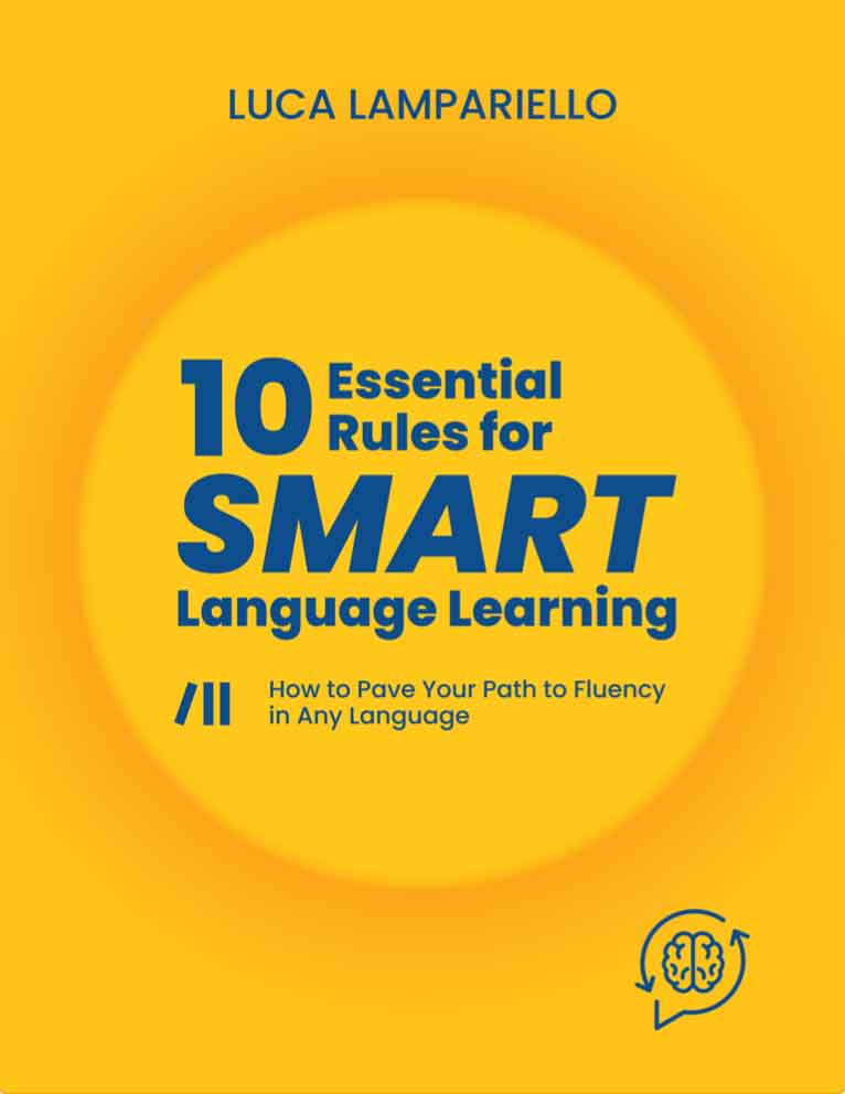 The 10 Essential Rules to SMART Language Learning contains the 10 most important rules for learning any language. They’re based on Luca’s powerful trifecta of mindset, skill set and self-organization.