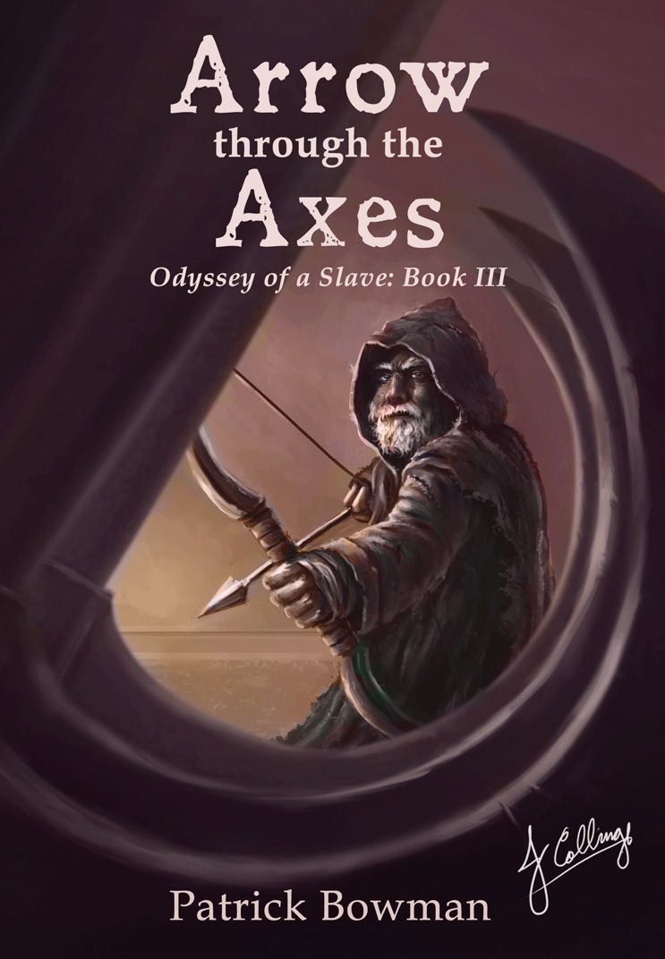 Arrow Through the Axes is the third installment of the Odyssey series told from the viewpoint of a captured slave, Alexi.  Through a series of events, Alexi finds himself a free man and able to search for his sister.  To do so is dangerous as he must go to Greece where the Greek soldiers and others may recognize him as a Trojan and enslave him again.
