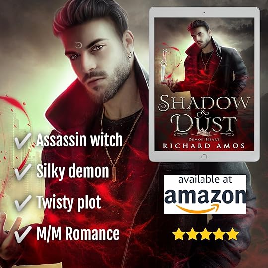 Shadow and Dust, the second book in the Demon Heart series by Richard Amos is the continuation of a captivating MM paranormal romance that will sweep you away to another time. Literally! Set in an amazing world created by the fabulous Amos, this story does not disappoint!
