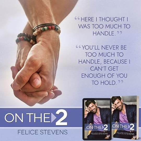 Whether you are a long-time reader of Felice Stevens, or if this is your first time, I highly recommend On the 2. Just take my word for it, and don’t start it just before you have to go somewhere important!!