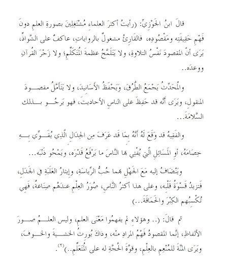 وفيه استوقفتني كلمةٌ لابن الجوزي رحمه الله -وكل ما في الكتاب جديرٌ بالتوقف والتأمل- لكن هذه الكلمة خصوصاً لكونها تمسني وتمس معظم الناس، ويا ليت كل منّا يُسقطها على نفسه .. هي هذه الكلمة: