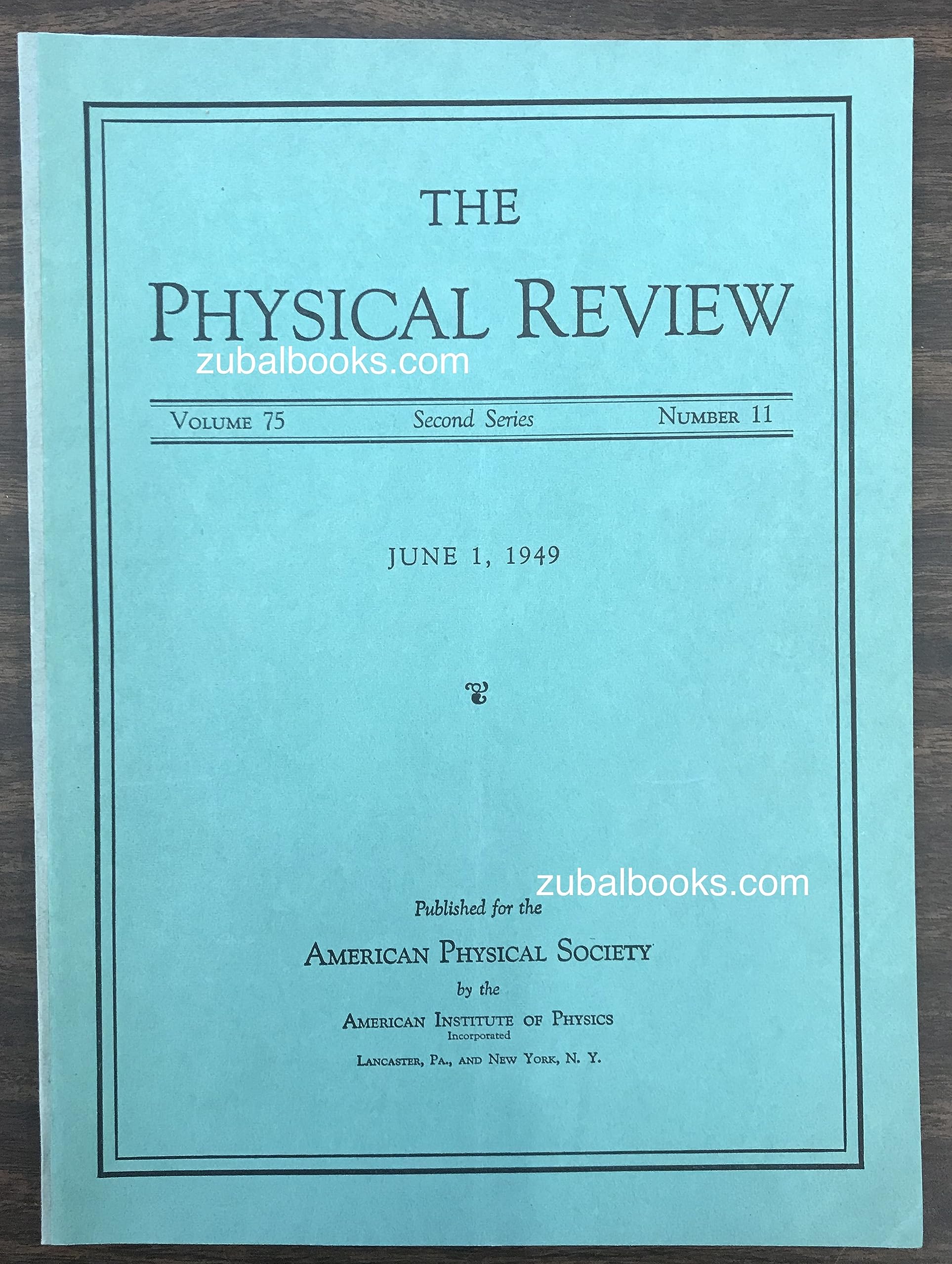The Physical Review. Second Series. Volume 75, Number 11. June 1, 1949. Includes "The S Matrix in Quantum Electrodynamics," by Freeman J. Dyson