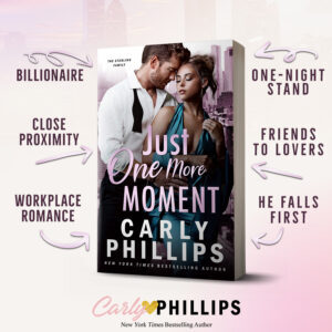 JUST ONE MORE MOMENT was another captivating, emotional, and entertaining read from Carly Phillips. Next up is Just One More Dare, featuring Dex Sterling and Samantha Dare, and I can't wait.