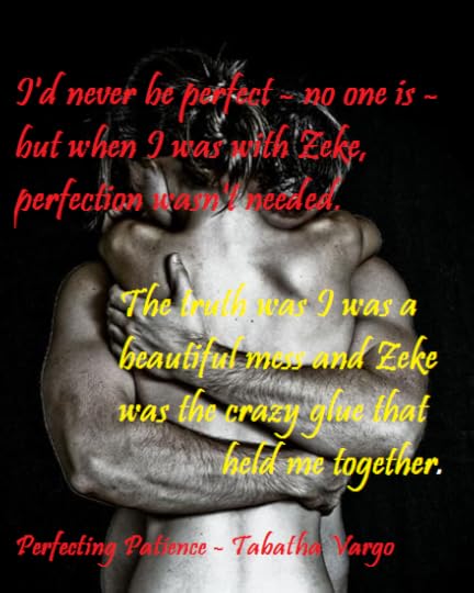 Perfecting Patience is the story of the healing process for both Zeke and Patience. Their story of getting to the place where the shattered pieces of their past can finally find a way to be mended. It is not an easy road and it certainly was a gut-wrenching read at times. But these two characters and their story worked their way into my heart completely.
