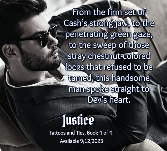 Justice is the fourth and final book in the Tattoos and Ties series by Kindle Alexander. Dev and Cash span two books so you need to read Chaos first.