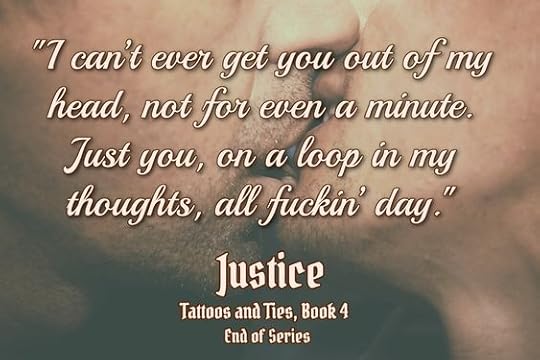 Justice is the final installment of the brilliant Tattoes And Ties series. If you are a fan of alpha males that are messed up, have huge hearts and incredible se&ual chemistry then you must read this series.