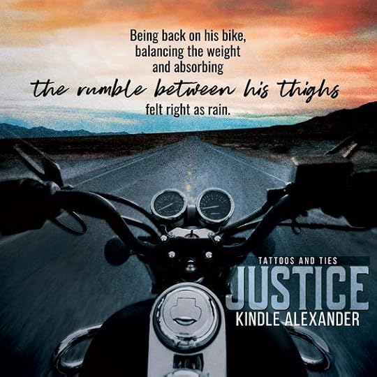 Kindle Alexander has done it again in the best way possible! Justice is the final book in the Tattoos and Ties series and it was one hell of a ride! Cash and Dev turn the motorcycle club on its ears and the government sideways! Dev is such a loveable goofball and Cash is so serious in one breathe then caves right into Dev in the next. I am not telling you any more about this story but you just wait for those breath catching moments that seem to roll off the pages! You do not want to miss any part of this beautiful series!!