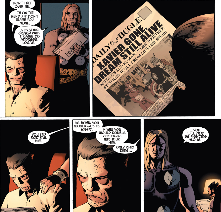 Captain America has the idea of a unified Avengers/X-Men team led by the formerly catatonic, Havok, Alex Summers, brother of Scott Summers, the guy who killed Charles Xavier. Are you sure you don’t want to sleep on this one, Cap?
