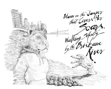 This is the story of a lass with no name who lives in a car with her Mum along the banks of the Brisbane River in a community of other folk who are also ”houseless but not homeless." And if you think about it, there is quite a distinction between the two. She is a budding Artist who draws the world and life around her in clear black ink line drawings, in a sketchbook that she carries with her everywhere. Her specialty is giving anthropomorphic traits to the people in her sketches, which most aptly display their inner character.