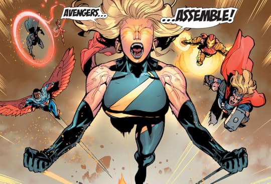 So, this is what they are farming out as the Avengers. It literally started with the list of Avengers with "Captain" Marvel (Originally Ms. Marvel) designated as "The Star". Doesn't anyone else think that's more than a little desperate - the others get descriptors Thor=God, Stark=engineer, Vison=Construct, Panther=King. Of course, the former Falcon is designated as "The Icon". The story isn't bad certainly better that some avenger tales put out in the 80s, but none felt quite as obviously desperate as this presentation.