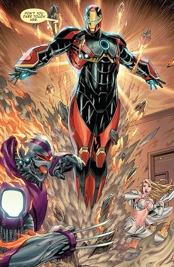 Tony has tasked Ironheart with crafting an armor like none other which Tony intends to use against Feilong and the armor of anti-mutant Sentinels. There are a few issues of build-up, including a nice conclusion to Emma and Tony's faux (?) marriage, then it's on to the big battle. In a series of full-page battle scenes, Tony takes the fight to the Sentinels, kaiju-style. The battle is great fun, but I gotta take back a star for Tony's endless, unnecessary voiceover. This "autobiography" has gone too far.