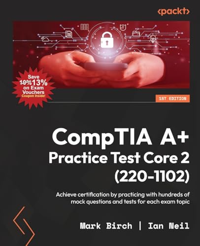 Polish the skills needed to efficiently prepare for the CompTIA A+ Core 2 (220-1102) exam by solving exam-oriented practice questions The CompTIA A+ Core 2 certification validates the knowledge you need to support common operating systems and software installations. This book tests the skills essential for you to secure computing environments and troubleshoot common computing issues, while adhering to operational procedures through practice questions. Using proven techniques to test a candidate's knowledge of Core 2 (220-1102) exam objectives, this book will ensure that you're well-prepared to pass the exam on your first attempt. The chapters in this book comprise multiple-choice questions at the same level of difficulty as those you’ll find in the official exam. All the questions are broken down into different chapters according to each exam domain, finishing with a 90-question mock exam to prepare you to confidently take the real exam. The chapters are designed in a way to not only test your knowledge, but also your ability to handle pressure during the exam. By the end of this practice test book, you’ll be well-prepared to pass the CompTIA A+ Core 2 exam with confidence. CompTIA A+ Practice Test Core 2 (220-1102) is for students and working professionals looking to pass the CompTIA A+ Core 2 (220-1102) exam who have already completed studying for this exam. This book's purpose is not to teach theory, but to verify that you have retained the information that you’ve studied and ensure your current level of preparedness is sufficient to pass the exam.