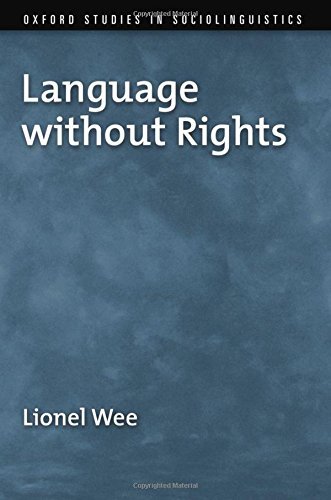 Language without Rights is a book-length critique of the concept of language rights. Synthesizing insights from a variety of disciplines, including linguistic anthropology, sociolinguistics, sociology and political philosophy, Wee demonstrates how the appeal to language rights faces a number of conceptual and practical problems, particularly because the discourse of rights is fundamentally inconsistent with the socially variable nature of language. The book also explores an alternative that is more in tune with the complexities of language in social life by suggesting that issues involving language are better managed within a model of deliberative democracy.