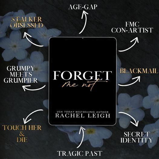 Forget Me Not is a dark romance, chock full of tropes to lure you in. Age gap, billionaire, stalker/obsessed, touch her and 💀, grumpy meets grumpier, all with an air of mystery in the background as we unravel both the FMC and MMC's lives.