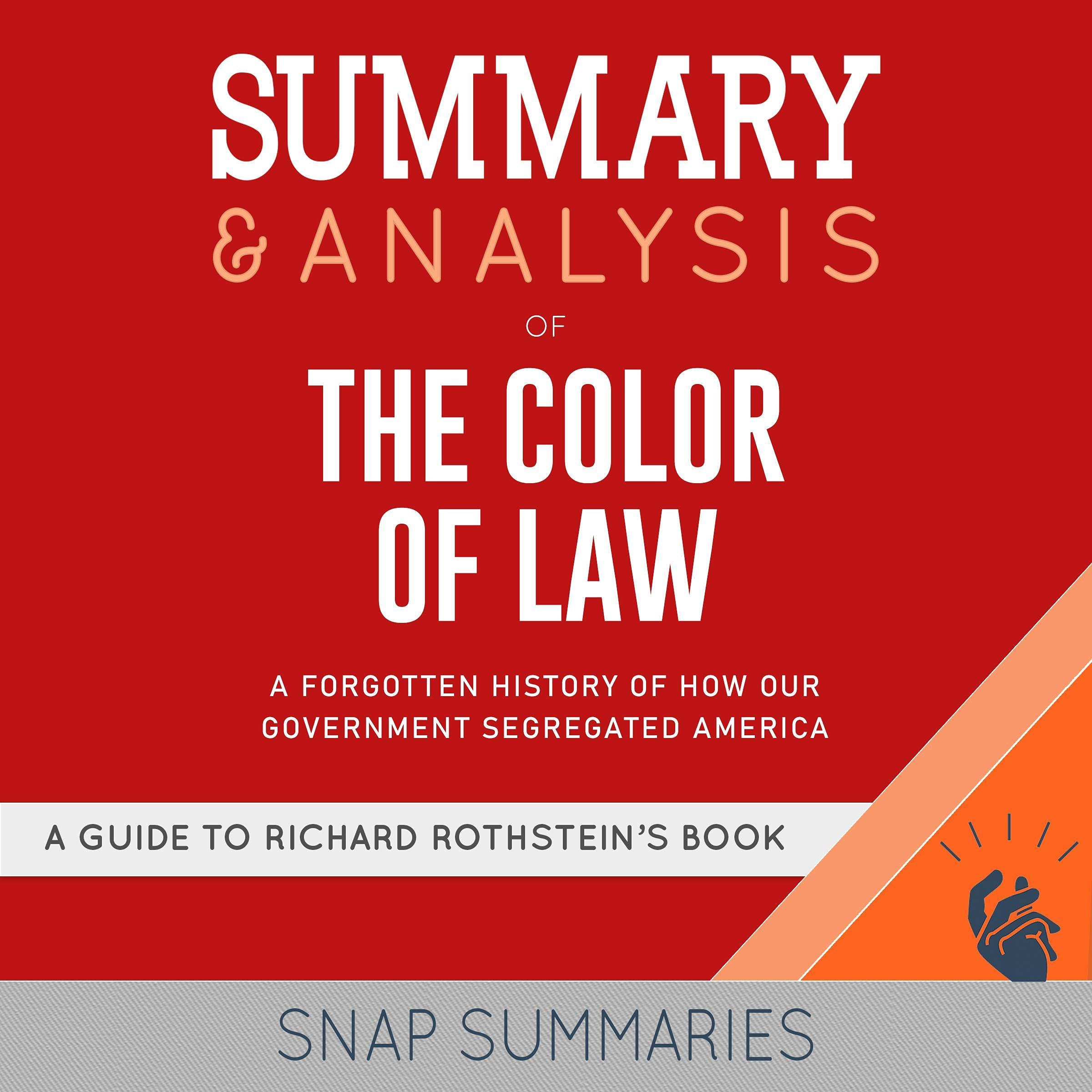 PLEASE This is a summary and analysis of the book and not the original book. SNAP Summaries is wholly responsible for this content and is not associated with the original author in any way. If you are the author, publisher, or representative of the original work, please contact info[at]snapsummaries[dot]com with any questions or concerns. If you'd like to purchase the original book, please paste this link in your Richard Rothstein’s The Color of Law is an academic and exhaustive recounting of the racial discrimination and segregation policies that were carried out by local, state, and federal agencies throughout the twentieth century, creating the segregation and wealth inequality that pervades America today. Rothstein leaves no stone unturned as he recounts the worst of racism and federally-sanctioned segregation in the United States. He covers everything from the forced segregation of already integrated neighborhoods, Supreme Court decisions allowing local communities to bar the sales of homes to black families, the forced movement of black Americans into slums and ghettos, the inability for African Americans to receive federal support in buying homes, the inability of African Americans to receive fair treatment and pay in unions and at work, and the violence and intimidation against black Americans that was allowed to take place by local police, among other things.