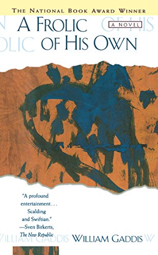 —Well it’s late enough Oscar, I brought out some sturgeon, maybe we’ll just want lunch? But he’d already ordered up tortellini for lunch, told that woman to fix it in some broth and then something in an Alfredo sauce and salad if anyone could find her, bad enough just trying to find anything herself, scissors, any scissors, those ginger preserves, his copy of Fitzhugh’s Cannibals All! because he certainly couldn’t scale the shelves in the library the mess it was in since they’d moved things around to put a bed in there for him where he couldn’t reach the phone that had already ring twice since he’d been left sitting here in the rain, abandoned was really the word for it, he’d had her look in his room upstairs for his play in a black pebbled binder and she finally came down with an old address book and the papers, had they brought out the newspapers? Not that he could read them if they had because that was the worst of it, his glasses, —what that woman could have done with my glasses I haven’t been able to read anything but the headlines since the day before the, the mail even the mail, wherever she’s hidden the mail like every illiterate in this whole illiterate country I have to watch the news trimmed to fit that damned little screen between the hemorrhoid and false teeth commercials, can you imagine what the rest of the audience looks like? America has taken Spot to its heart, did you see it last night? Every idiot in sight down there with something to sell, dog candy, hot dogs, Free Spot! buttons, Free Spot! T shirts, Spot dolls with huge wet eyes and that whole hideous Cyclone Seven? peddling this take apart puzzle model and a game where you try to get the dog out with magnets shaped like a dog bone? Marching around for animal rights, artists’ rights, black rights, right to life, abortion, gun control, Jesus loves and the flags, Stars and Stripes, Stars and Bars and then somebody . . .The plot concerns Oscar, a self-absorbed and reclusive history professor living in the family mansion in the Hamptons, who is suing the producers of a major Civil War movie he claims have stolen a play he wrote decades earlier. That play, quoted extensively in the book, is ponderous and Socratic - parts of Plato's dialogues are quoted almost verbatim - and bears a passing resemblance to Eugene O'Neill's Mourning Becomes Electra (and eventually O'Neill's estate ends up suing Oscar). Oscar is frequently visited by his gold-digging hick girlfriend Lily, sister Christine and her husband Harry (a lawyer who comes closest to the Stephen Dedalus-like Otto of The Recognitions: learned, cynical, with literary leanings). As the reader must guess who is talking, each has a distinct style, but all Gaddis characters speak in a frantic, self-interrupting, torrent. Thus between other experimental flourishes, like long passages of drama, legal rulings, or news articles, the book reads most like the fast, witty plays of Noel Coward or David Mamet (or more classically, Sheridan's School for Scandal, which appears peripherally in the novel). Lawsuits multiply (Oscar is also suing the manufacturer of his car, since he accidentally ran himself over trying to start it; Christina's friend is suing the father of her aborted foetus to maintain her right to abort it, while suing a hospital for foetal endangerment; and a dog trapped in a metal sculpture in Greenwich Village creates a ping-pong of suits and countersuits...). If there is a theme it might lie in Oliver Wendell Holmes Jr., whose Civil War experiences made him a moral and philosophical skeptic, and led to the watershed of legal realism, something Oscar's grandfather, a colleague of Holmes', fiercely opposed. By 1994 (when the novel takes place) it is clear Holmes has won - as the book opens
