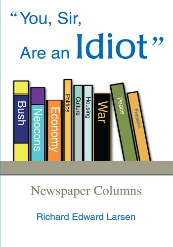 """You, Sir, Are an Idiot"" compiles journalist Richard Edward Larsen's short columns on America's recent big events. Larsen's columns arise from the belief that reasonable debate must be restored to understand and to resolve the issues polarizing too much of public debate in the United States. No topic escapes Larsen's On Iraq war ""No, this is not a failure of the intelligence agencies, it is a failure of this administration to use the intelligence intelligently."" On war ""We should never avert our eyes from the violence we visit upon ourselves in the name of hatred or politics or religion."" On ""I'm not sure when the tradition of new year's resolutions began, but I wouldn't be surprised if it started when a female Neanderthal looked at her mate one New Year's Eve and said, 'You need to quit slouching.'"" On the ""Peace is not merely a process, it is a commitment to the future of mankind."" Larsen's columns urge us to question what we are told, to look beyond the superficial and to exercise always our basic right to look someone in the eye and say, ""You, sir, are an idiot."""