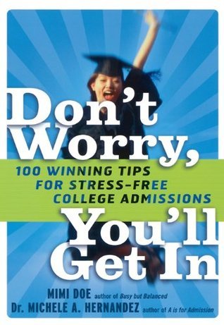 In Don't Worry, You'll Get In , one of the country's top college admissions counselors Michele Hernandez and leading parenting expert Mimi Doe join forces to bring teens the first college admissions guide of its an easy and accessible book full of 100 specific tips to navigate the admissions process successfully and calmly. For each step, Hernandez explains to teens in simple terms exactly what they need to do, while Mimi Doe empowers them to tackle that step with confidence and in the least stressful way. Covering everything from standardized testing to summer plans to writing a great essay, Don't Worry, You'll Get In is the perfect guide for high schoolers who want to be accepted at the school of their choice without burning out for the sake of getting in.