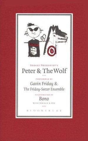 When I was a child I had an old record of Peter and the Wolf with an illustrated jacket. Because I have CP, I couldn’t play it by myself since I am spastic and would have have scratched the record with the needle. So I had to wait until there was someone else who would put it on the record player. It was always very special to me. So when it was announced that Gavin and Bono were doing this version in the early 2000s, I had to get a copy for nostalgia’s sake. I no longer have a CD player around to listen to it and I hope I still have it packed somewhere, because it’s selling on eBay now for $50. But I did find just the audio on YouTube and it was nice to listen to again. Gavin Friday has such a soothing (and naturally malevolent) voice. It’s fabulous to go to sleep to. As for Bono’s illustrations, they are quite humorous and fun.