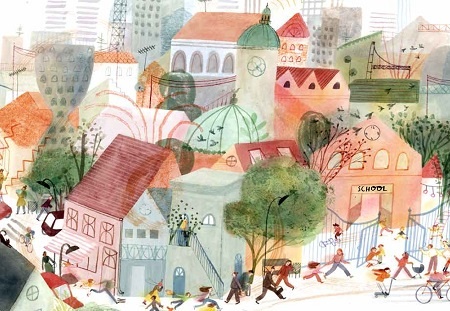 It's such a lovely picture book. I loved the way the text was playing around on the pages, the font and placement. The pictures, of the nature and the city is stunning and adorable. In it's whole format, it's very educational and playful.